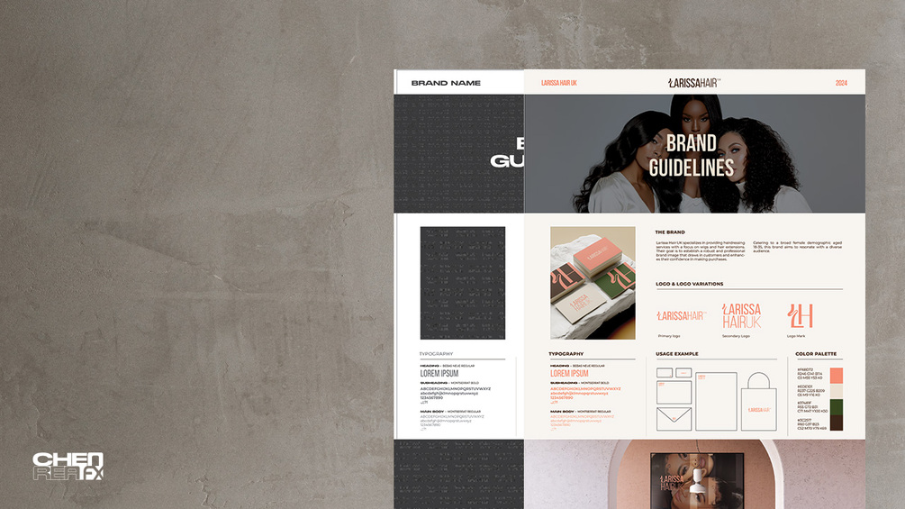 • Logos and variations, mockups, Typography, Colour Palette, Usage etc.